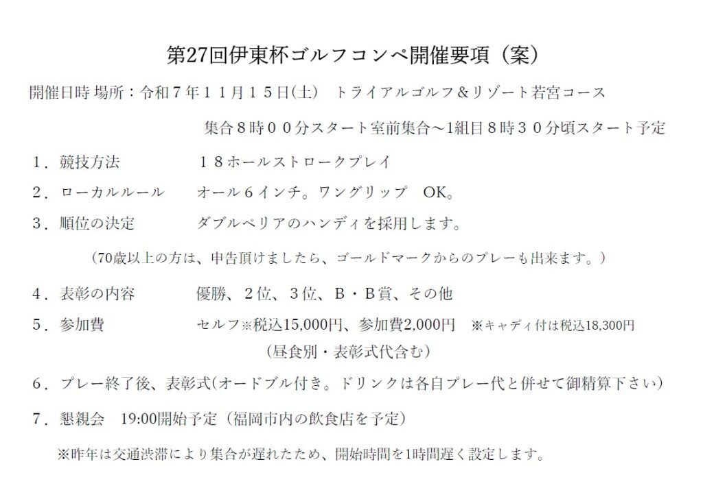 さて、本題ですが、第27回 伊東杯ゴルフコンペの御案内です。