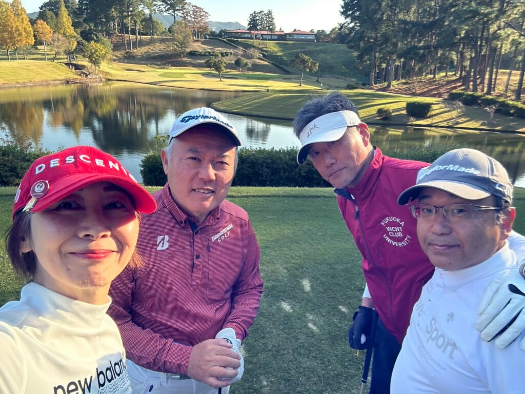 昨年とうってかわって超快晴のゴルフ日和のなか、福岡大学ヨット部OB・OG24名、西南学院大学OB1名、九産大OB1名の総勢26名の猛者たちが陸の上で闘いました。